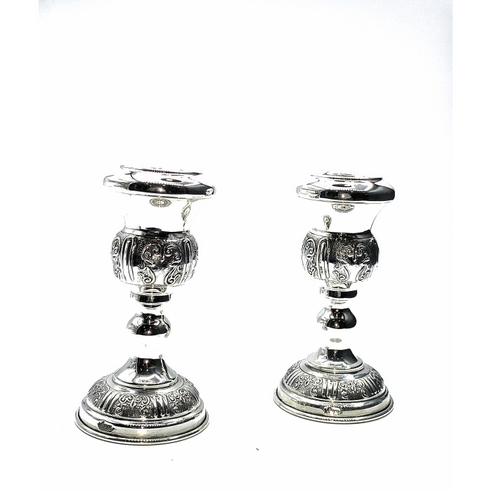 Paire de bougeoirs argent massif, copie des bougeoirs de la Rabbanite, Haddad Bros
