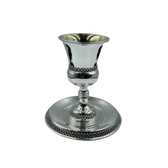 Verre de kidouch à pied, métal argenté, hauteur 14,5cm, diamètre assiette 14cm, Moreshet