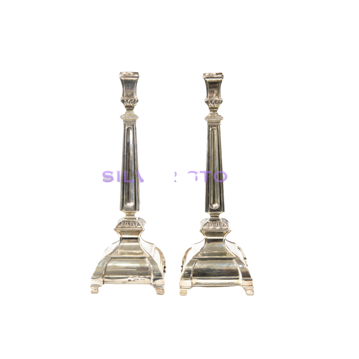 Paire de bougeoirs argent massif, copie des bougeoirs de la Rabbanite, Haddad Bros