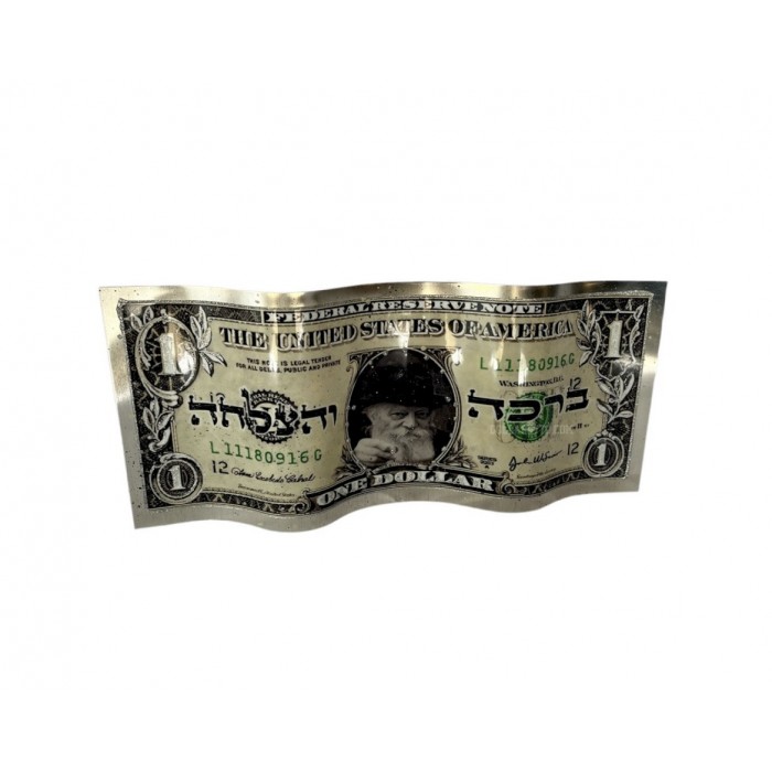 Une œuvre d'art réussie de ce dollar du Rabbi sur un support en aluminium et peint à la main par l'artiste Alain Mimouni. De quoi décorer votre intérieur (appartement, bureau, boutique) à poser ou à fixer au mur. Une idée cadeau originale. Petit modèle :Longueur 27,5cm, hauteur 12cm / Grand modelé Longueur 38cm, hauteur 16cm