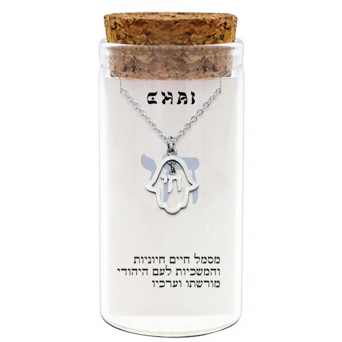 Pendentif Hamsa fantaisie en métal coloris or et incrusté de pierres brillantes avec sa chaine