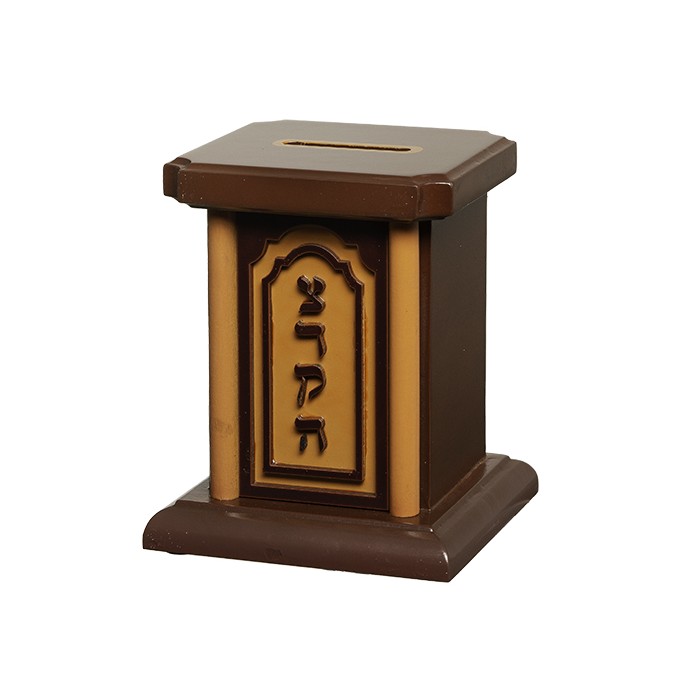 Boite de tsedaka plexiglass avec Dollar du Rabbi 1 Dollar et fond transparent, dimensions hauteur 15 diamètre 7cm, Alain Mimouni