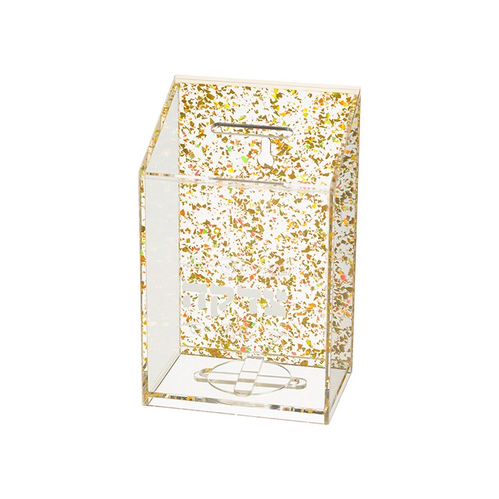 Boite de tsedaka en verre transparent, déco plaque coloris argent