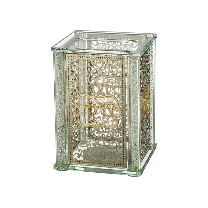 Boite de tsedaka en verre transparent, déco plaque coloris or