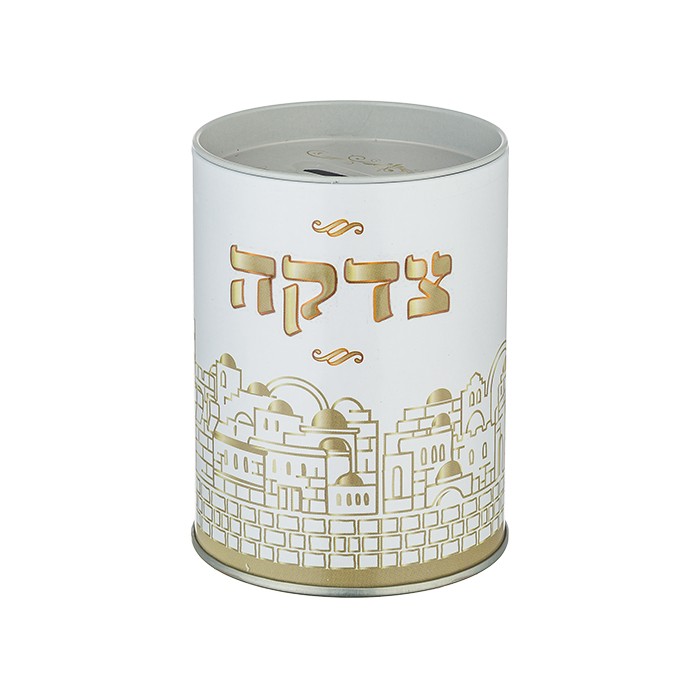 Boite de tsedaka plexiglass avec Dollar du Rabbi 1 Dollar et fond noir, dimensions hauteur 26cm diamètre 13cm, Alain Mimouni