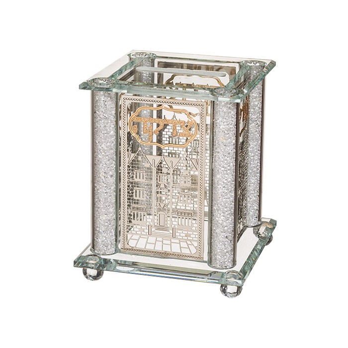 Boite de tsedaka en verre transparent, déco plaque coloris or