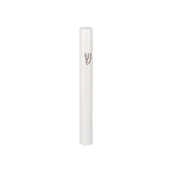 Grand boitier de mezouza pour parchemin de 20cm, design coloris blanc et shin gravé sur le coté dans le coin