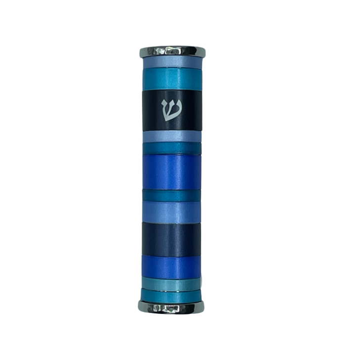 Boitier mezouza design en métal pour parchemin 10cm. Dégradé de bleu. Emanuel.
