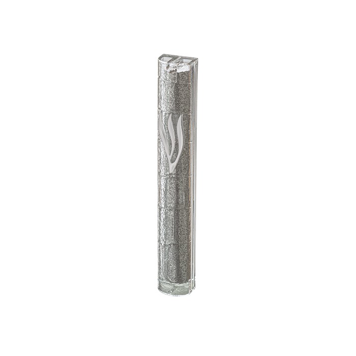 Boitier mezouza aluminium brossé shine en relief argent pour parchemin 12cm