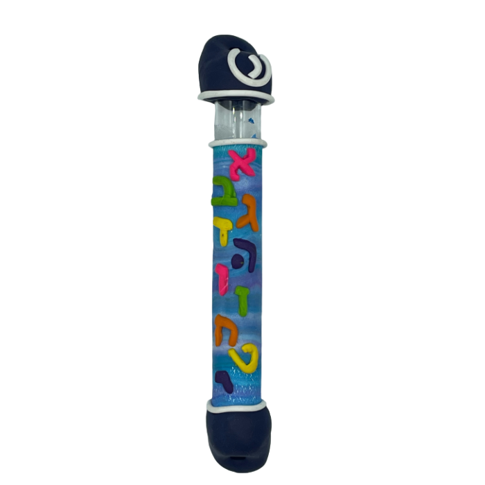 Boitier mezouza design métal, coloris bleu ciel parchemin 15cm