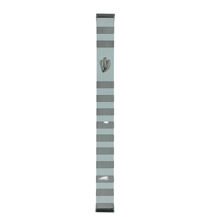 Boitier mezouza design métal, coloris gris clair et blanc, parchemin 15cm