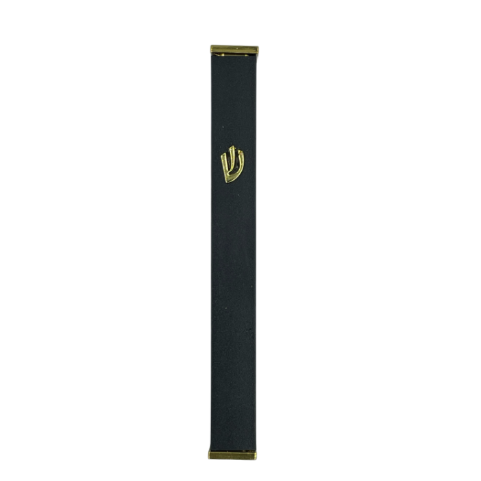 Boitier mezouza design métal, coloris gris foncé et blanc, parchemin 15cm