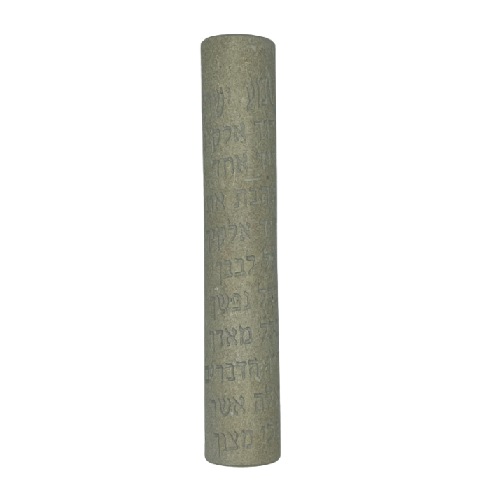 Grand boitier de mezouza pour parchemin de 20cm, design coloris gris béton et shin gravé sur le coté dans le coin