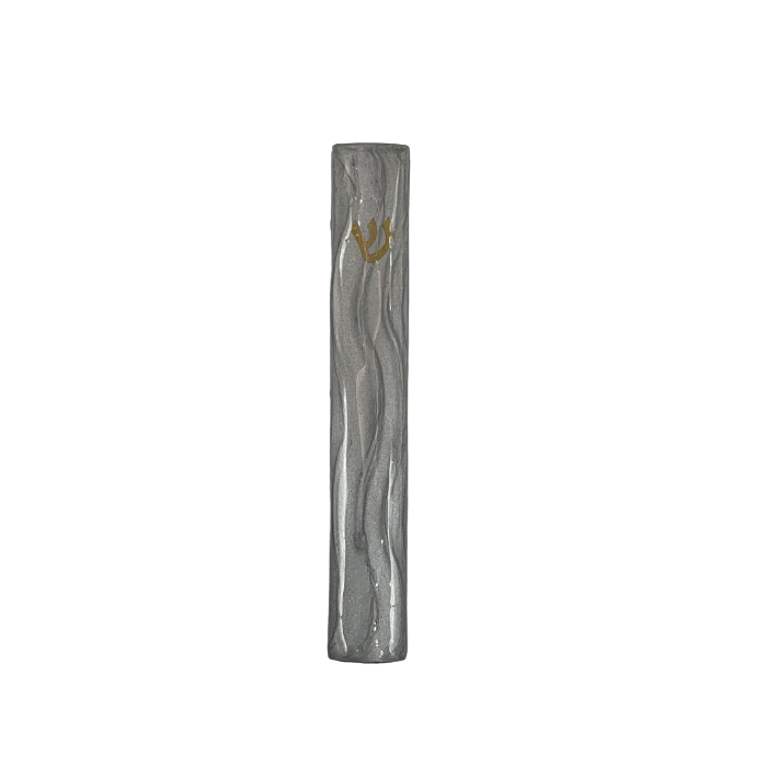 Boitier de mezouza pour parchemin de 12cm, design coloris gris et shin gravé sur le coté dans le coin