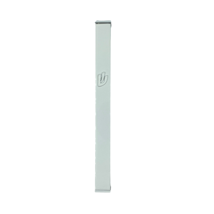 Boitier de mezouza pour parchemin de 12cm, design coloris blanc et shin relief argent.