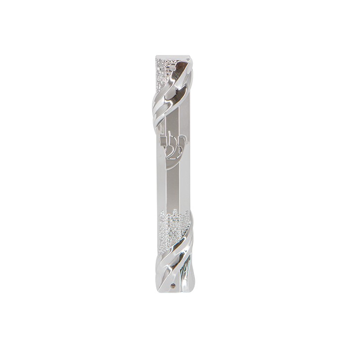 Boitier mezouza plastique argent style Jérusalem, 12cm, ouverture au dos, ruban adhésif fourni