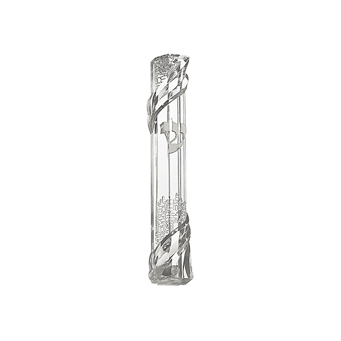 Boitier mezouza métal couleur argent shine en relief argent pour parchemin 12cm