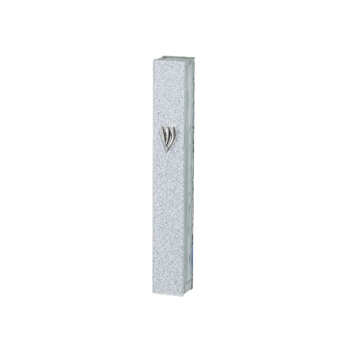 Boitier mezouza design métal, coloris gris clair et blanc, parchemin 15cm