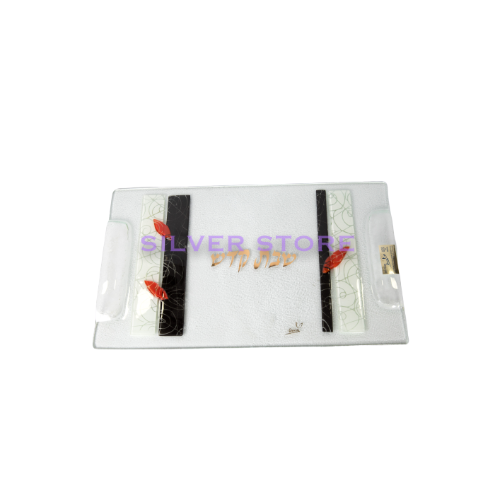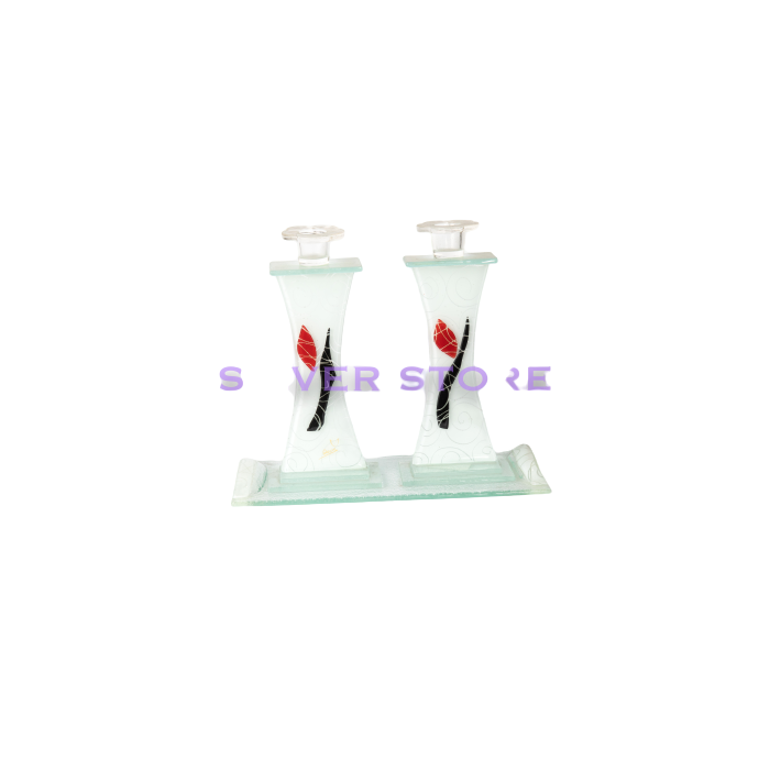 Paire de bougeoirs avec plateau en verre.