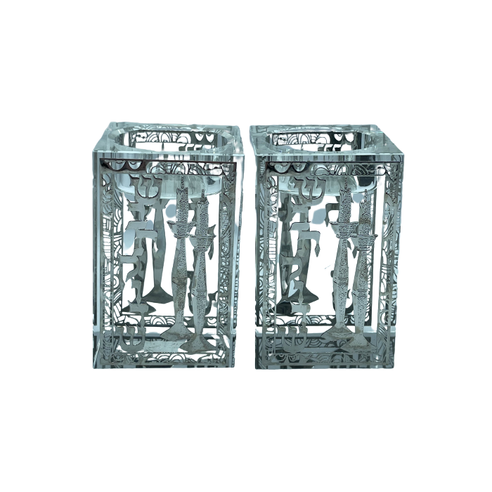 Paire de bougeoirs design métal martelé, motif Jérusalem