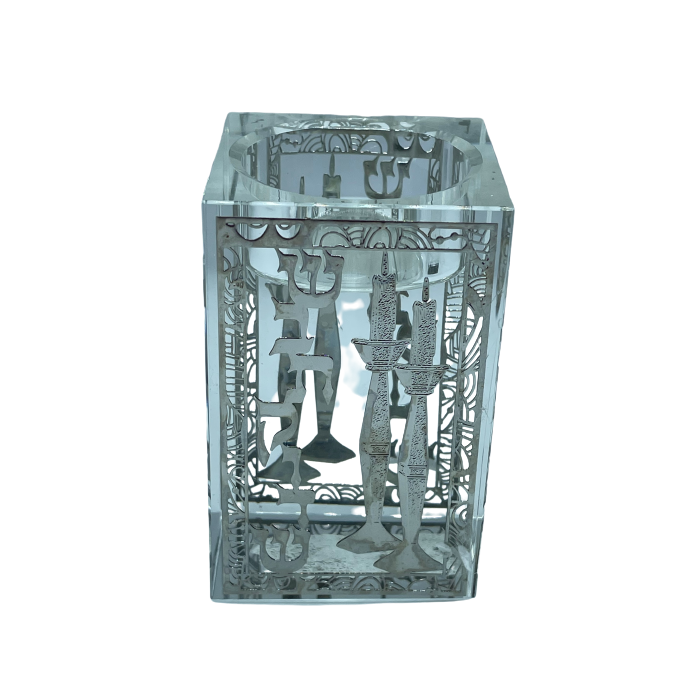 Paire de bougeoirs design métal martelé, motif Jerusalem