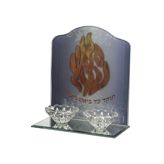 Bougeoir multiple 2 bougies en cristal, coloris bleu modèle "Aech cheli"