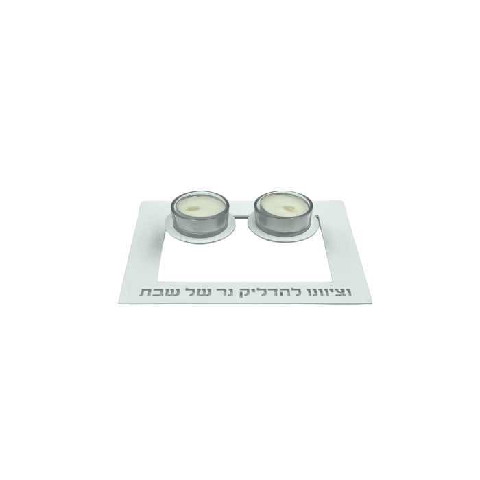 Double bougeoir cristal, déco aluminium coloris or. Art Judaica. Hauteur 24cm.