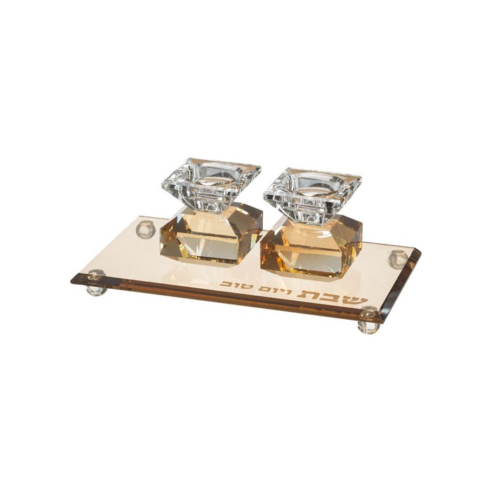 Coffret comprenant verre de kidouch, paire de bougeoirs et une salière, en cristal. Art Judaica.