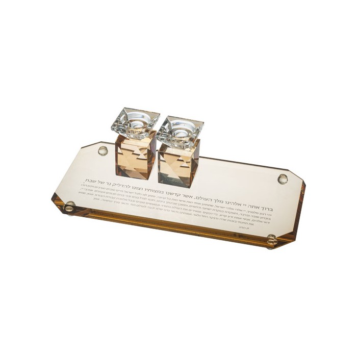 Coffret comprenant verre de kidouch, paire de bougeoirs et une salière, en cristal. Art Judaica.