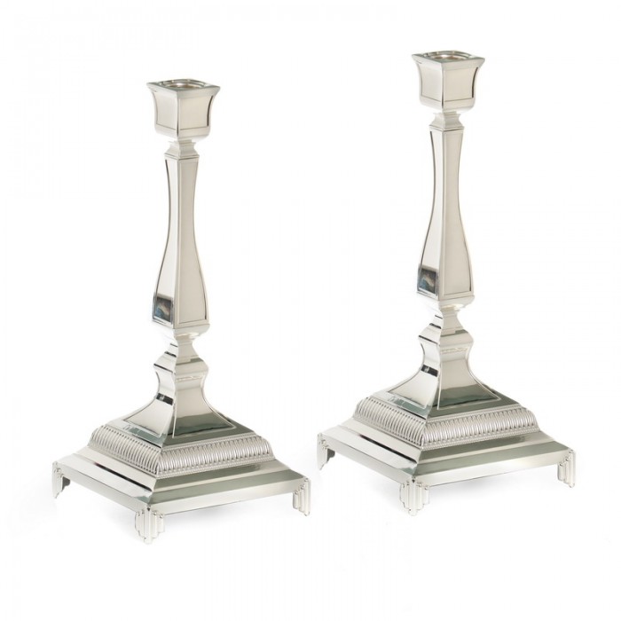 Paire de bougeoirs argent massif, copie des bougeoirs de la Rabbanite, Haddad Bros