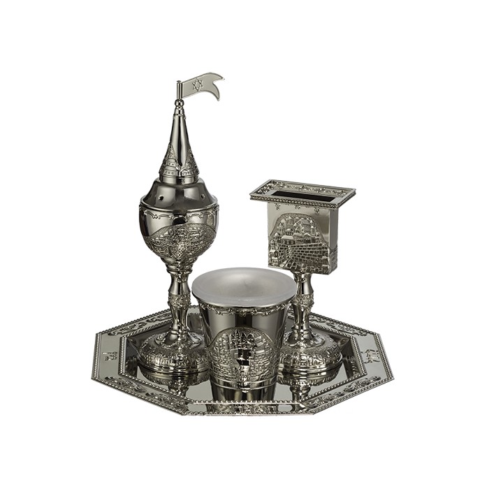 Verre de kidouch métal avec son gobelet de protection en plastique, motif. Hauteur 9cm.