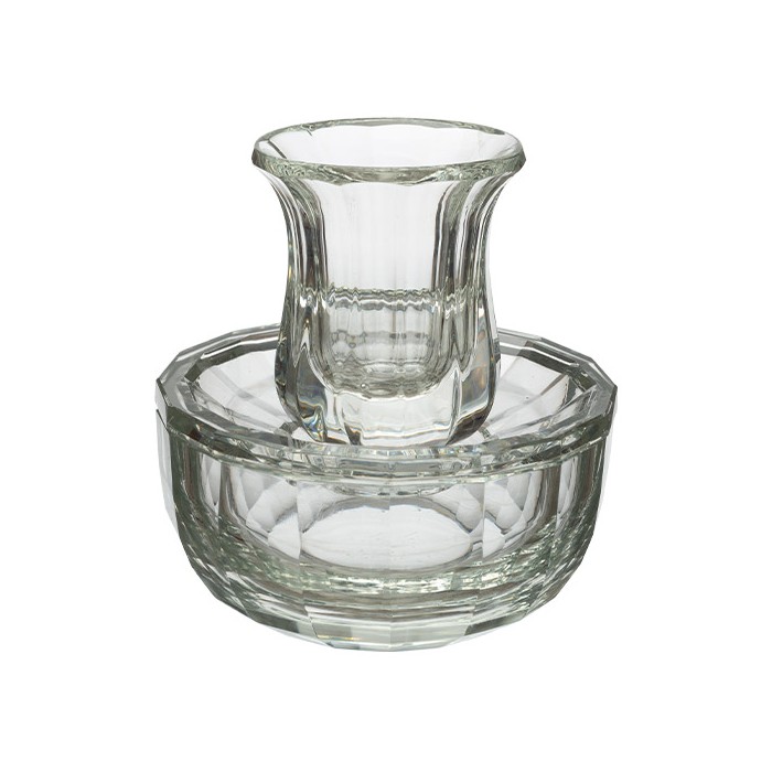 Coffret comprenant verre de kidouch, paire de bougeoirs et une salière, en cristal. Art Judaica.
