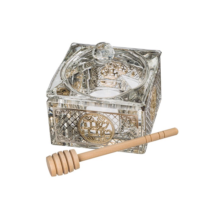 Menorah cristal, base et mur avec plaque aluminium, hauteur 19cm, longueur 30cm.