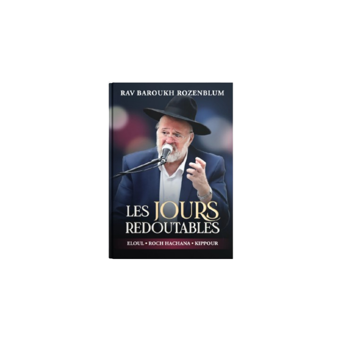 Le livre « Les Jours Redoutables » est la traduction de « Yamim Noraïm », un recueil des meilleurs de ses cours sur les jours de jugement et de miséricorde que nous allons vivre avec crainte, recueillement et introspection du 1er Eloul en passant par Roch Hachana et pour finir par Yom Kippour ; c’est le moment le plus important de l’année et nous avons tous besoin d’une délivrance personnelle.