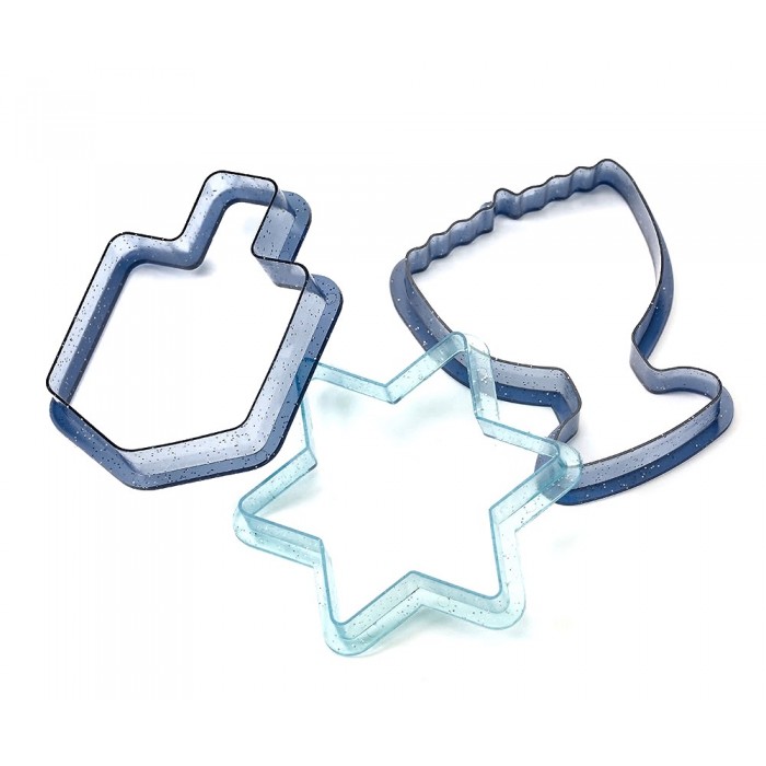 Menorah métal design coloris argent godets tons bleu, hauteur 22cm, Emanuel