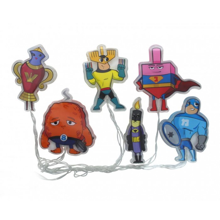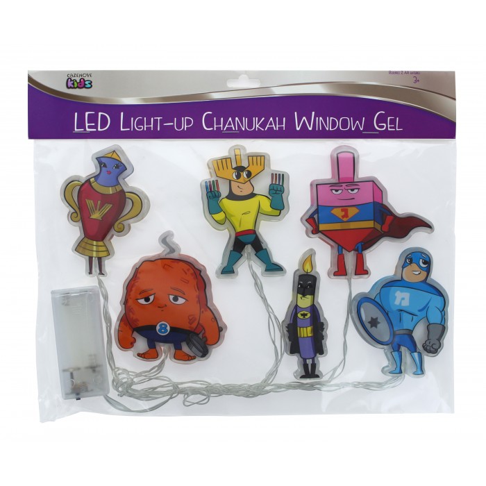 Ce magnifique gel décoratif pour fenêtre de Hanoukah est le cadeau parfait pour égayer n'importe quelle fenêtre et ajouter un peu d'éclat à la fête. Ce pack se compose de six super-héros de Hanoukah. Taille approximative des caractères 8 cm x 8 cm. Les piles ne sont PAS incluses.