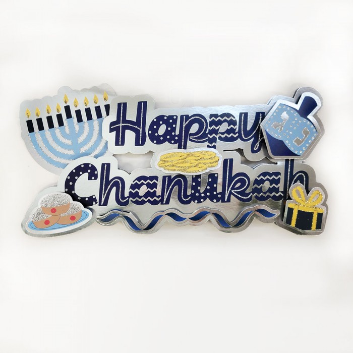 Menorah cristal, base et mur avec plaque aluminium, hauteur 19cm, longueur 30cm.