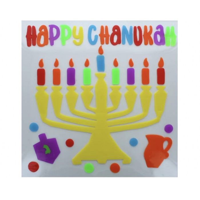 Décoration gel en forme de menorah pour vitres et autres surfaces lisses, amuse les petits et les grands. Ne laisse pas de traces, réutilisable.