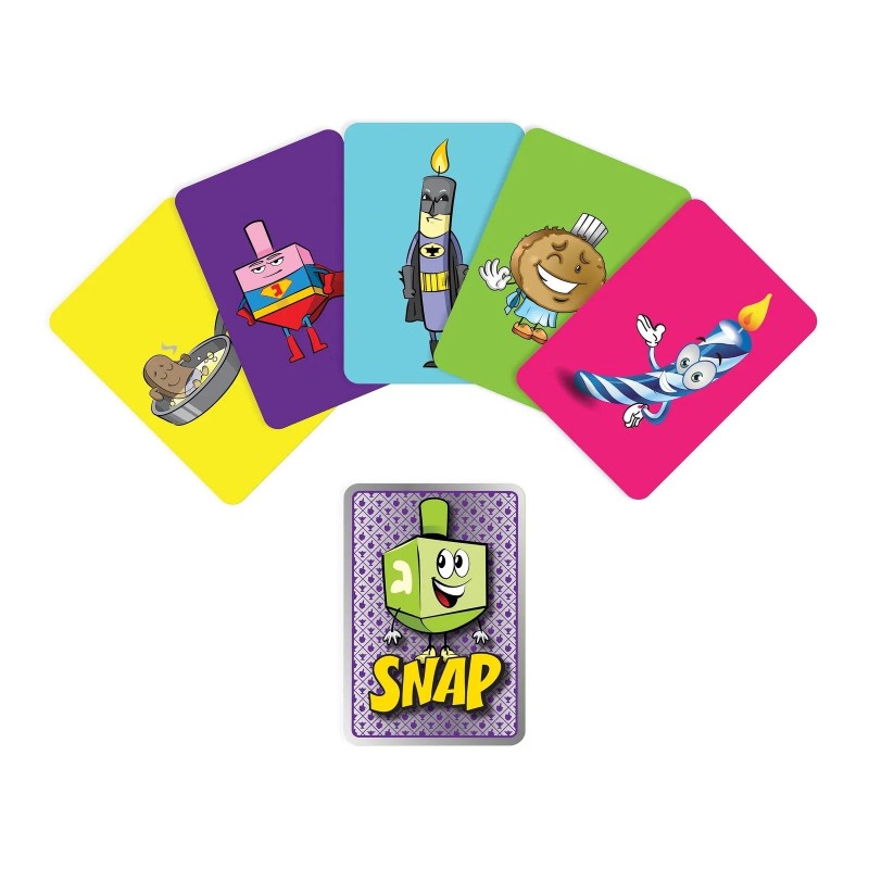 Une version spéciale Hanoukah du jeu de cartes familial classique « Snap ». Contient 26 paires de cartes aux illustrations colorées sur le thème de Hanoukah. À tour de rôle, les joueurs doivent associer les images festives !