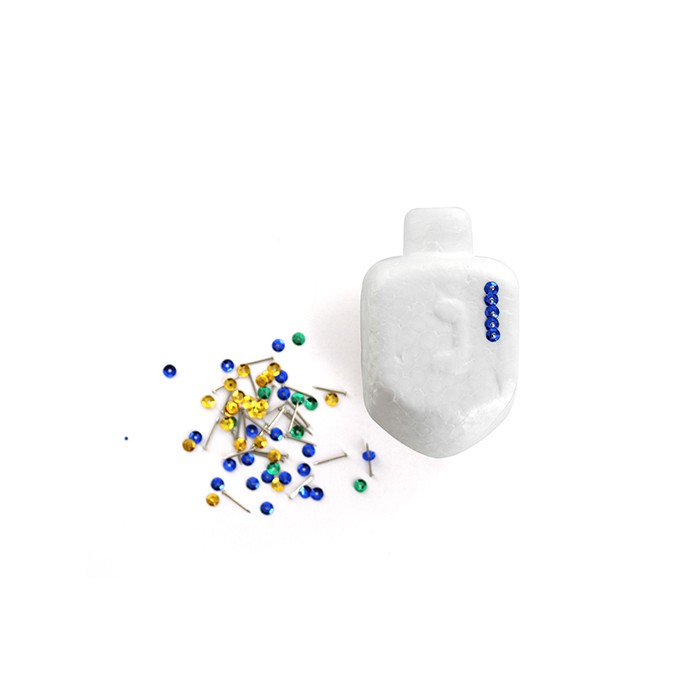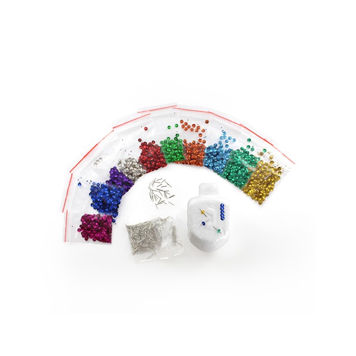 Cette magnifique toupie accompagnée de ses paillettes en polystyrène apportera des heures de plaisir, de créativité et de divertissement à tout enfant. Ce pack contient 1 toupie en polystyrène, 10 paquets de paillettes de couleurs différentes et un paquet d'épingles. Cette activité est un excellent moyen d'éduquer les enfants et de faire participer les festivités de Hanoukah. Convient aux enfants de 6 ans et plus. (Peut nécessiter la surveillance d'un adulte).