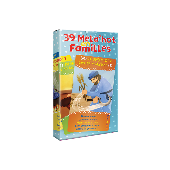 Enfin un jeu de 7 familles version Judaica en français. Vous allez certainement passer de bons moments à vous amuser aussi bien en famille qu'entre amis. Et en même temps, vous apprendrez quels sont les travaux interdits du Chabbat. Un jeu de Tsivot Hachem. De 2 à 4 joueurs, dès l'âge de 3 ans.