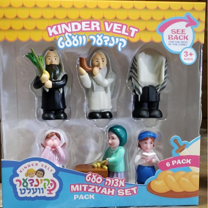 Set de dix personnages très populaires Kinder Velt en silicone. Jeu imaginatif et éducatif. Personnages hassidiques en pleine action d'une mitsva telle la bénédiction sur le loulav, ou bien le son du shoffar, ou encore préparer le pain du chabbat, etc.... Dès l'âge de 3 ans.