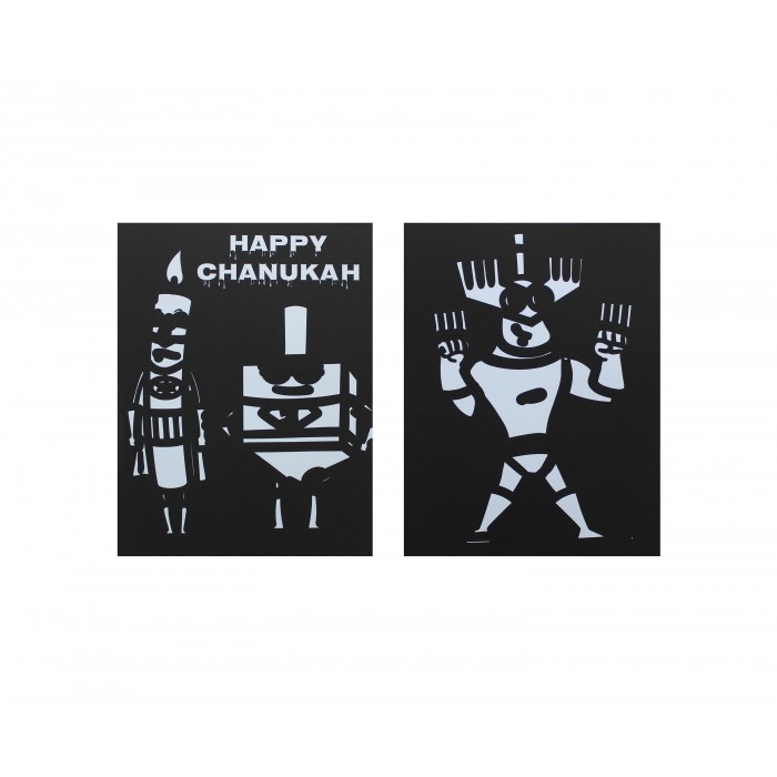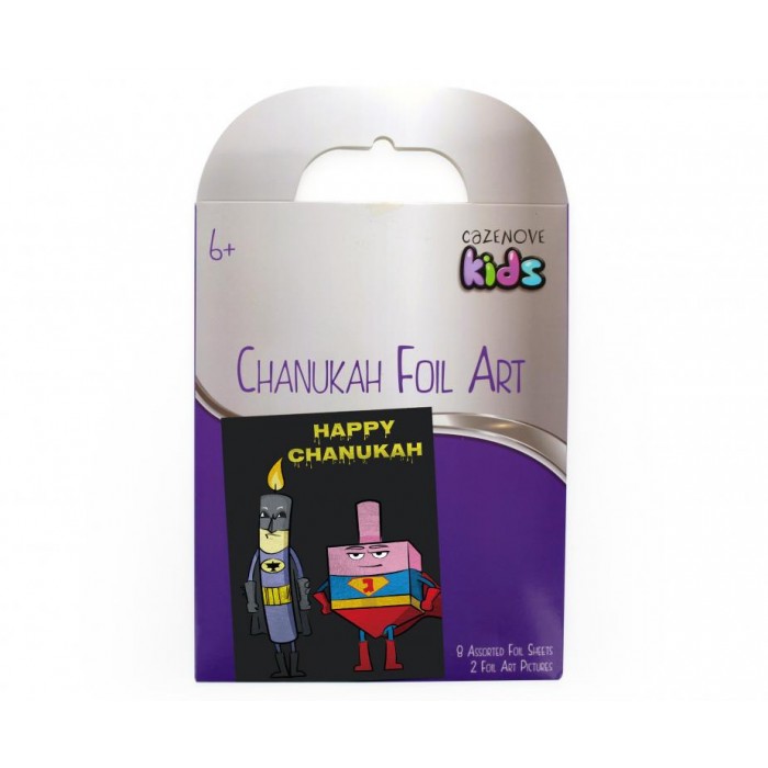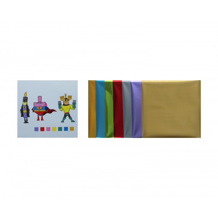 Entrez dans un monde de Hanoukah et donnez lui vie avec ces scènes magiques. Essayez de créer quelque chose d'un peu différent dans vos décorations de Hanoukah cette année. Chaque image possède un caractère différent, toutes pré-imprimées et prêtes à être coloriées. Sans même lever un stylo, donnez lui un style particulier. Décollez simplement une section de l'image, placez le papier d'aluminium sur la zone collante et frottez avec votre doigt. Soulevez la feuille d'aluminium et la feuille brillante se transfère sur l'image et lui donne vie.