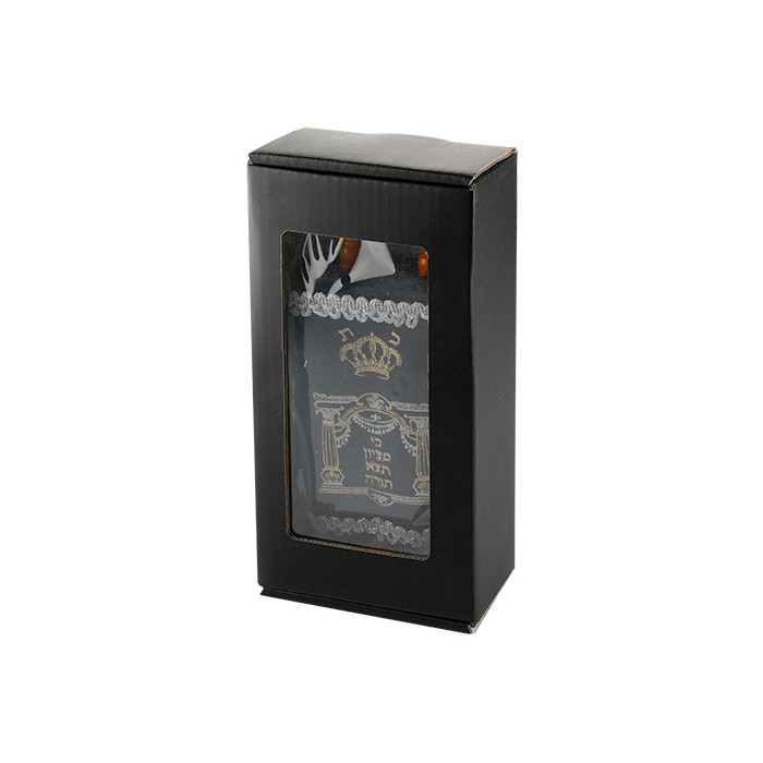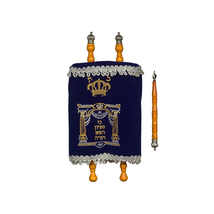 Sefer Torah enfant, Portes de Vilna. Hauteur 26cm. Manteau bleu marine.