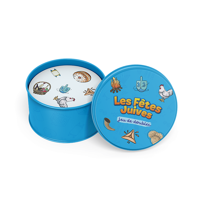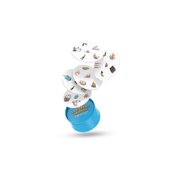 Jeu de société tiré du fameux DOBBLE pour petits et grands, thème les fêtes juives, 31 cartes, Tsivot Hachem.