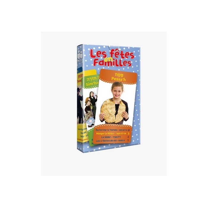 Enfin un jeu de 7 familles version Judaica en français. Vous allez certainement passer de bons moments à vous amuser aussi bien en famille qu'entre amis. Et en même temps, vous apprendrez le monde des fêtes juives et tout ce qui les concerne. Un jeu de Tsivot Hachem. De 2 à 4 joueurs, dès l'âge de 3 ans.