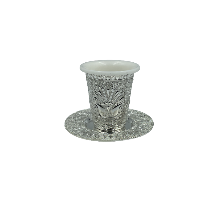 Verre de kidouch et son assiette en inox emmaillé, coloris gris foncé. Hauteur 8,5cm.