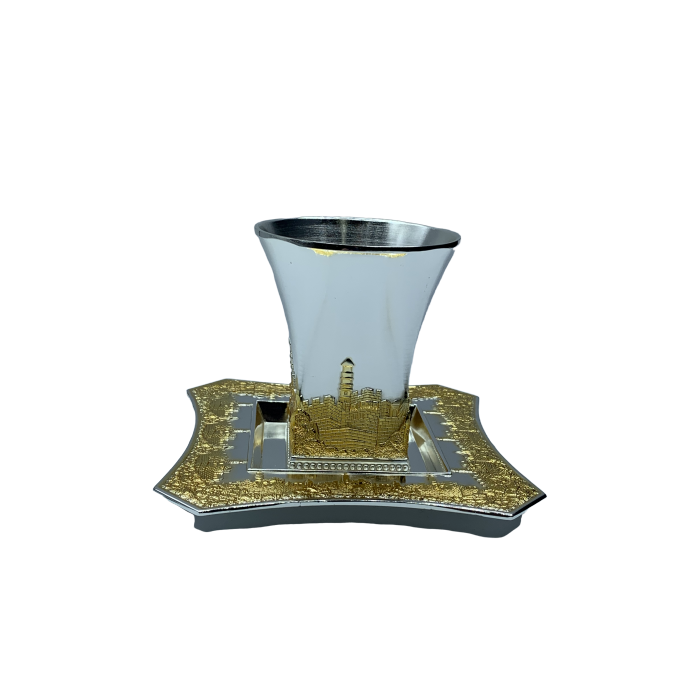 Menorah métal design coloris argent godets tons bleu, hauteur 22cm, Emanuel