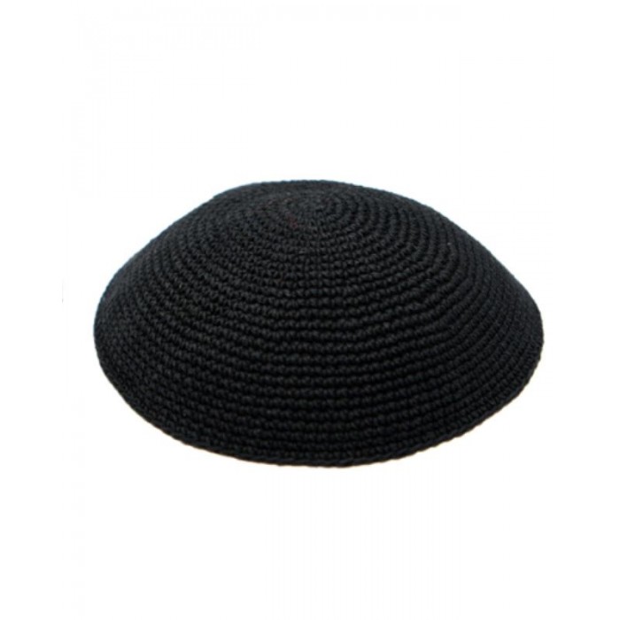 Kippa de jute de haute qualité, coloris noir et bord noir en cuir, fabrique IKIPPAH.