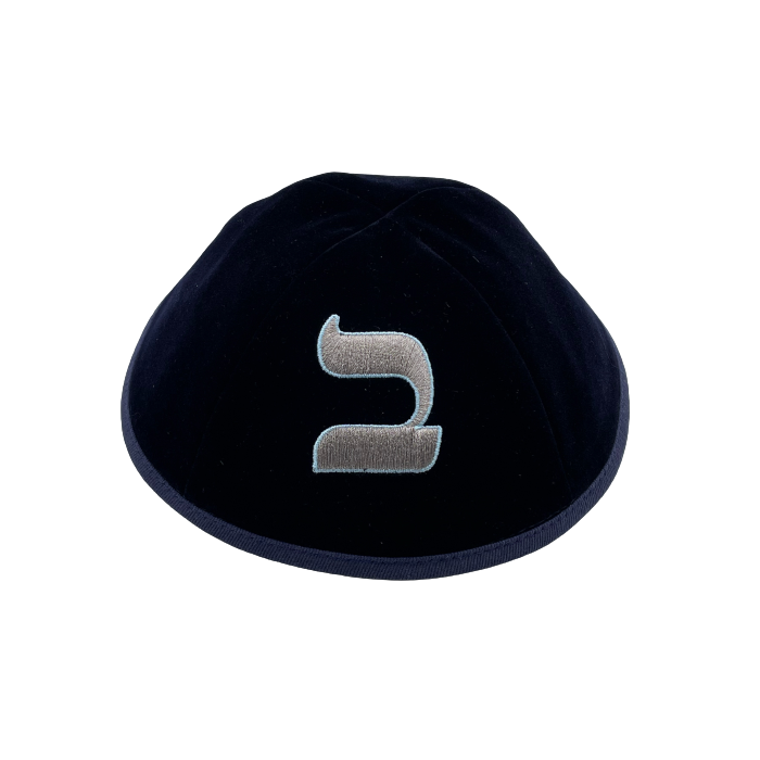 Kippa velours enfant avec lettre BETH brodée.
